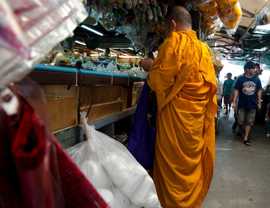 Un moine faisant ses emplettes