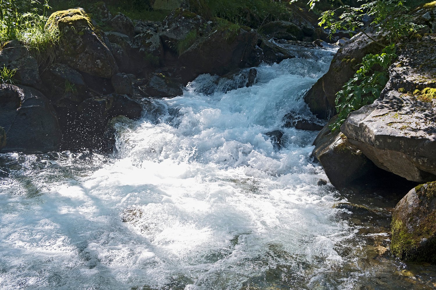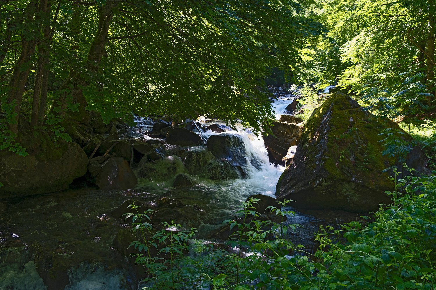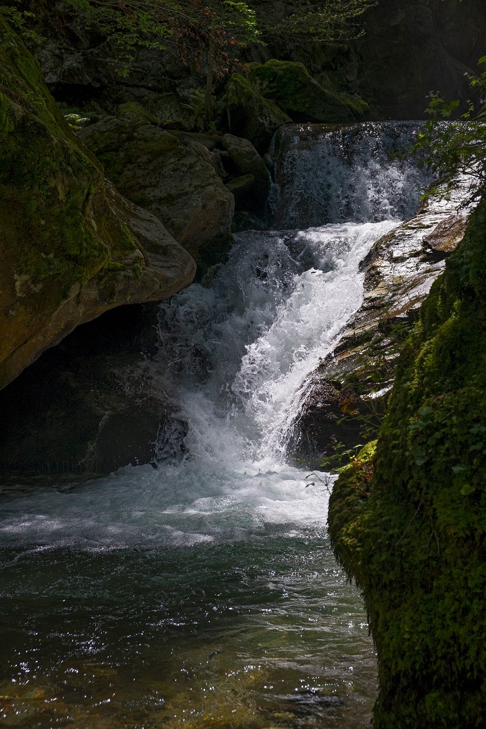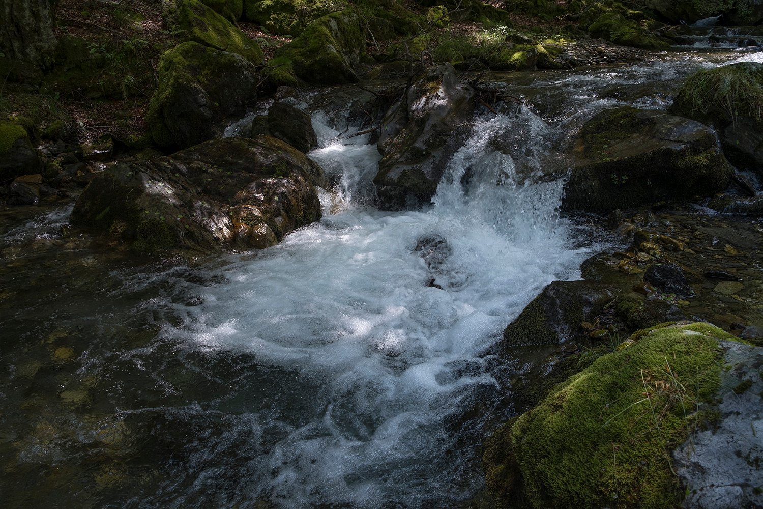 ... qui s'écoulent entre des rochers moussus