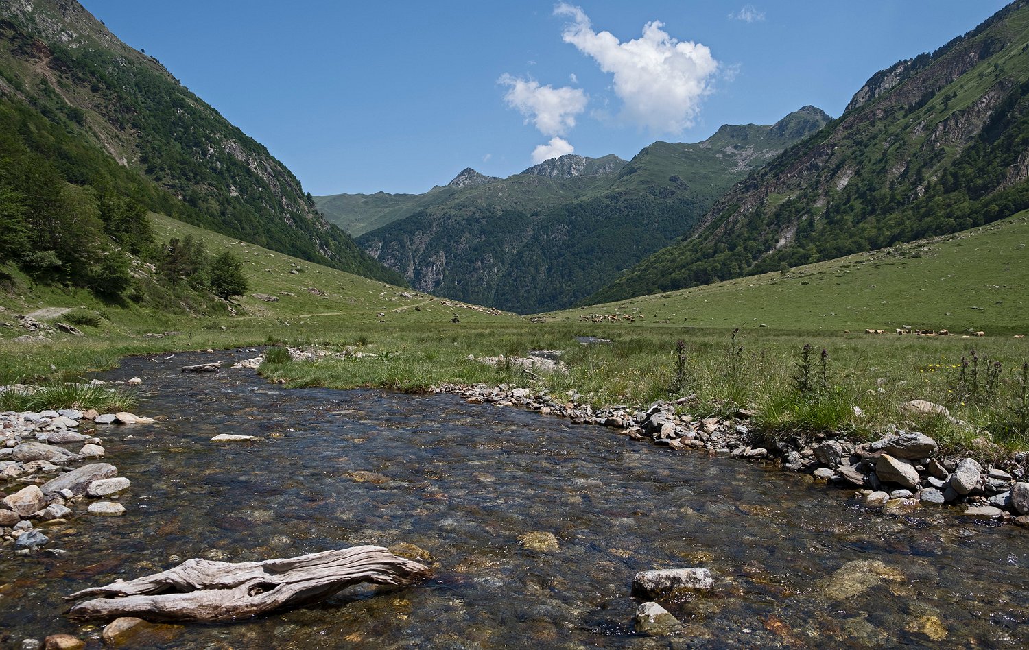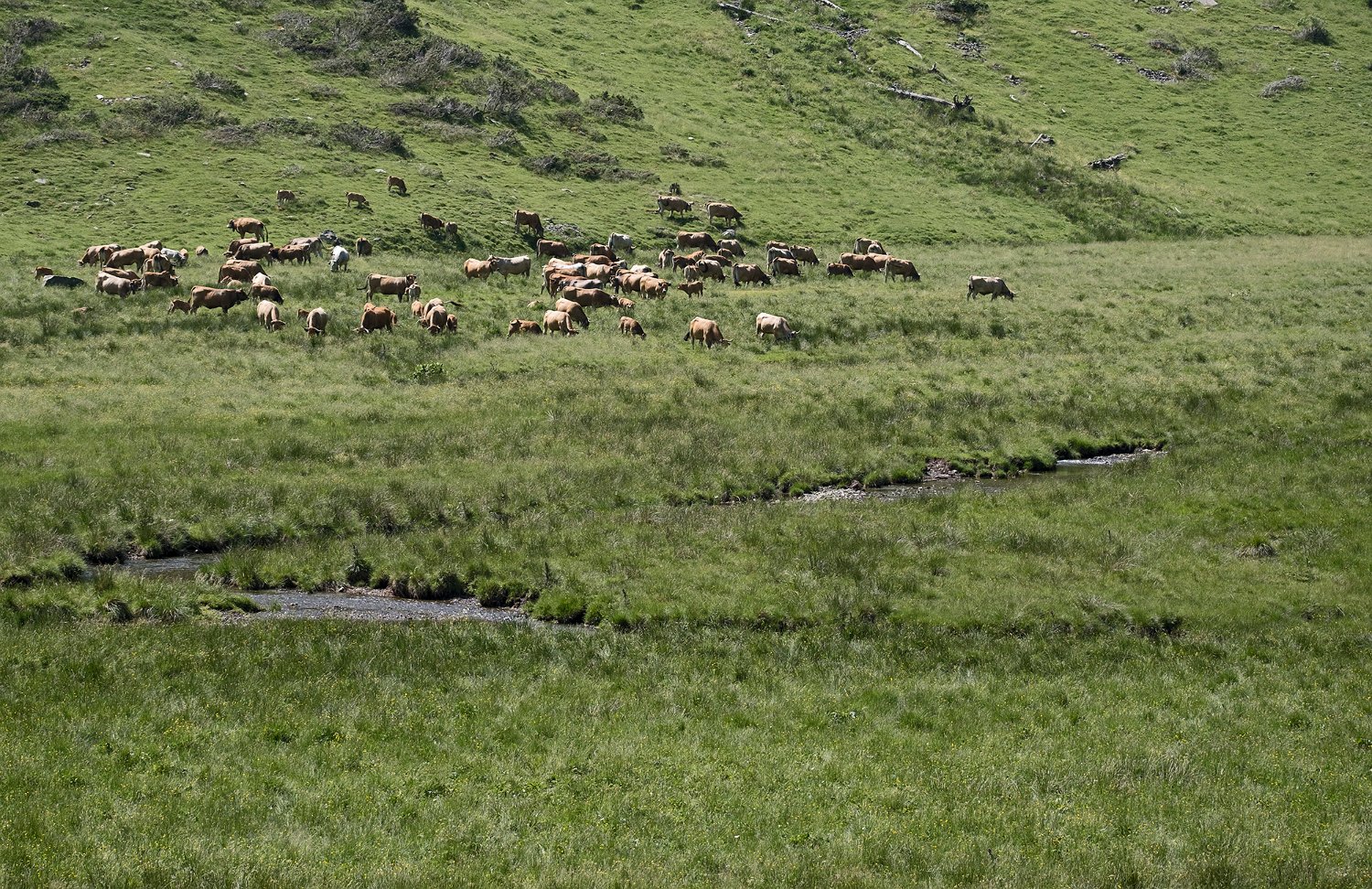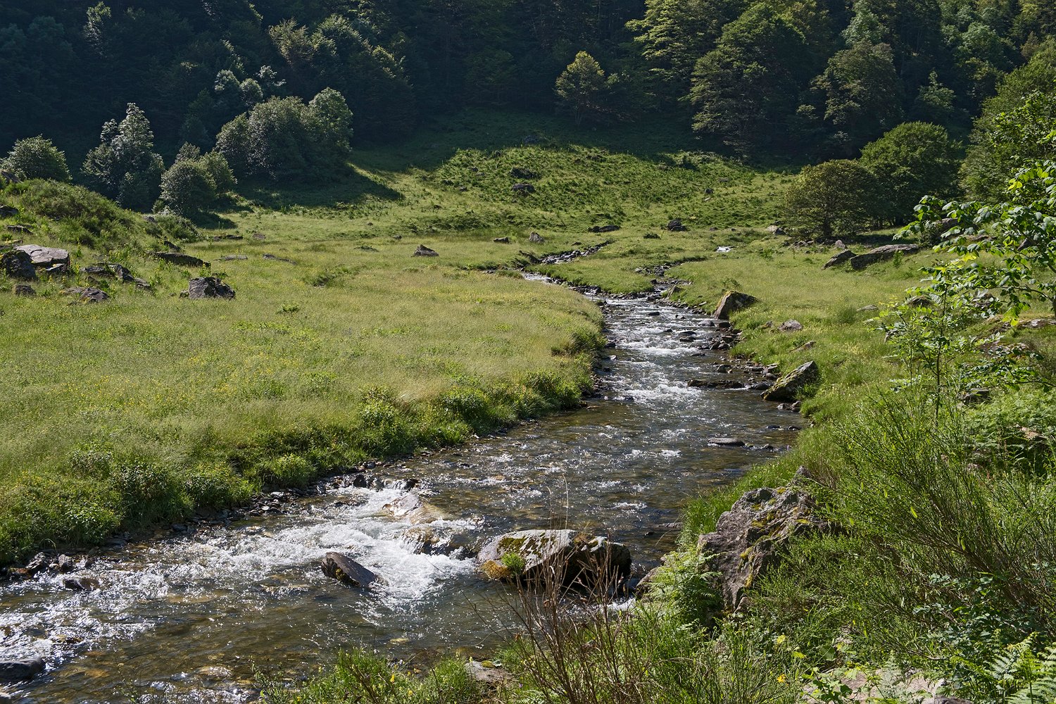 Elle se calme parfois dans la traversée des prairies (ici la jasse de Justiniac)