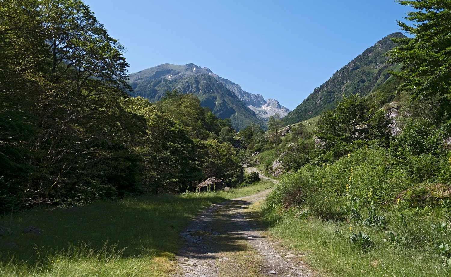 La piste forestière longe l'Oriège, torrent qui s'écoule vers l'Ariège