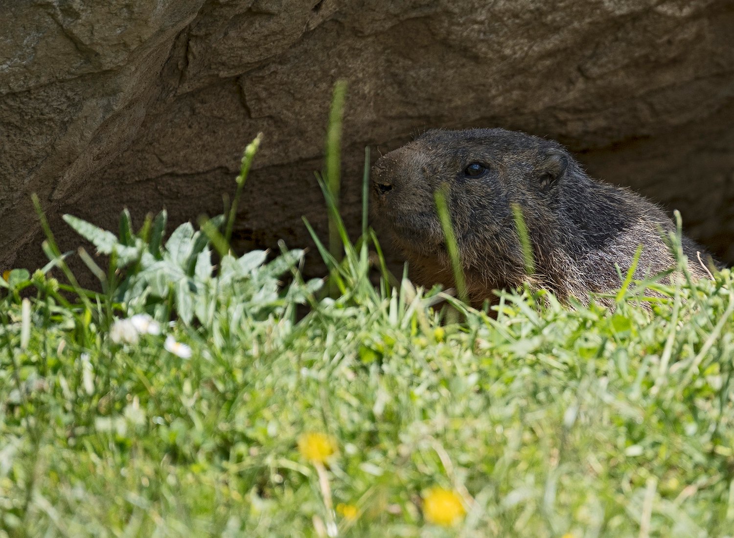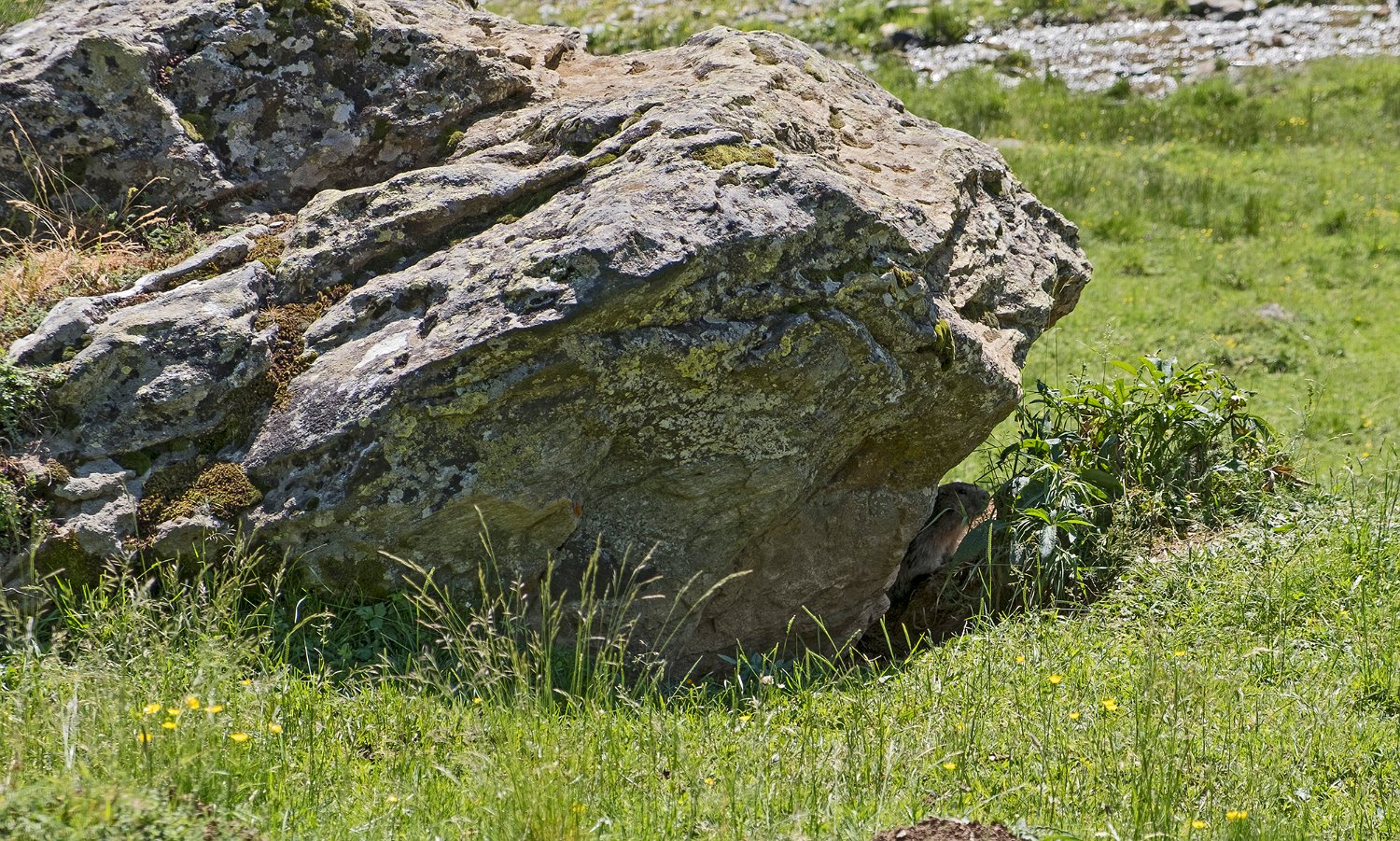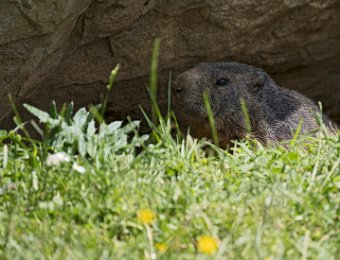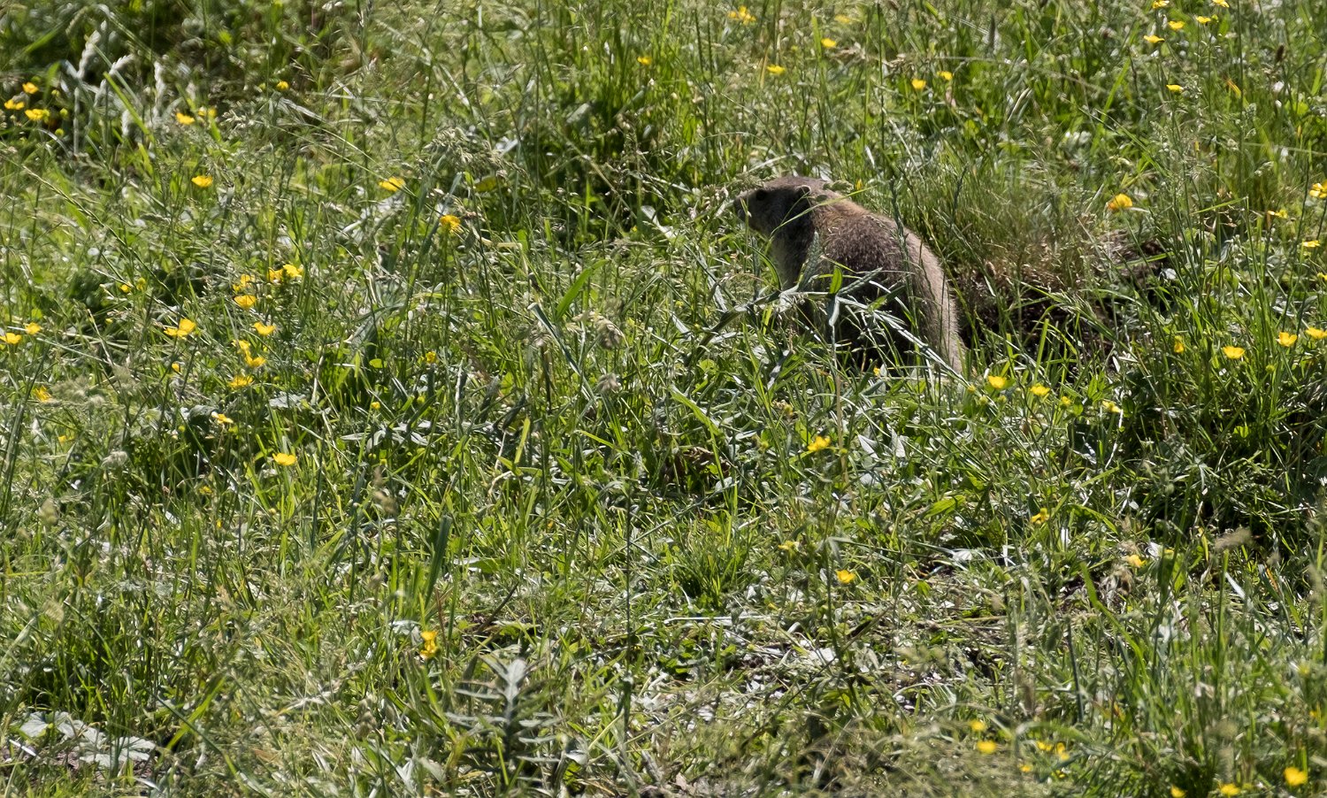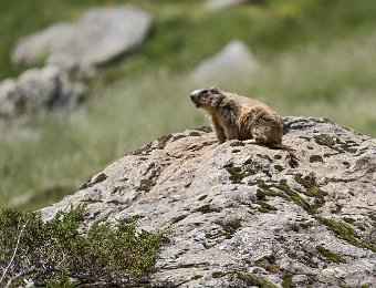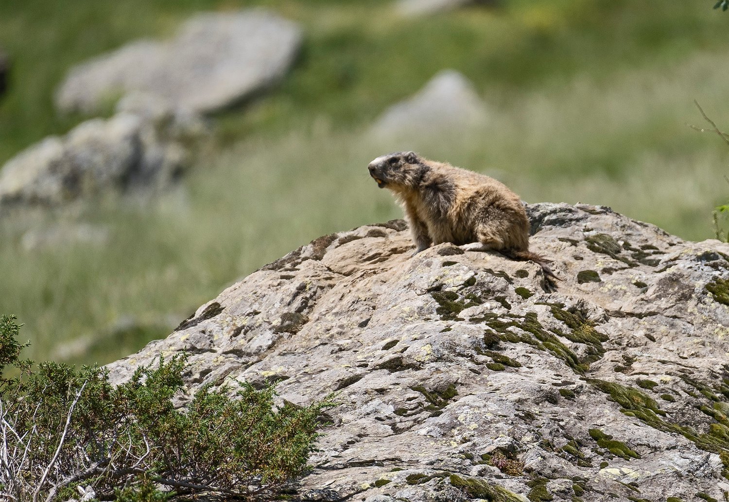 Mais les habitants les plus surprenant de la jasse sont les marmottes. Ici une sur la défensive à l'entrée de son terrier ...