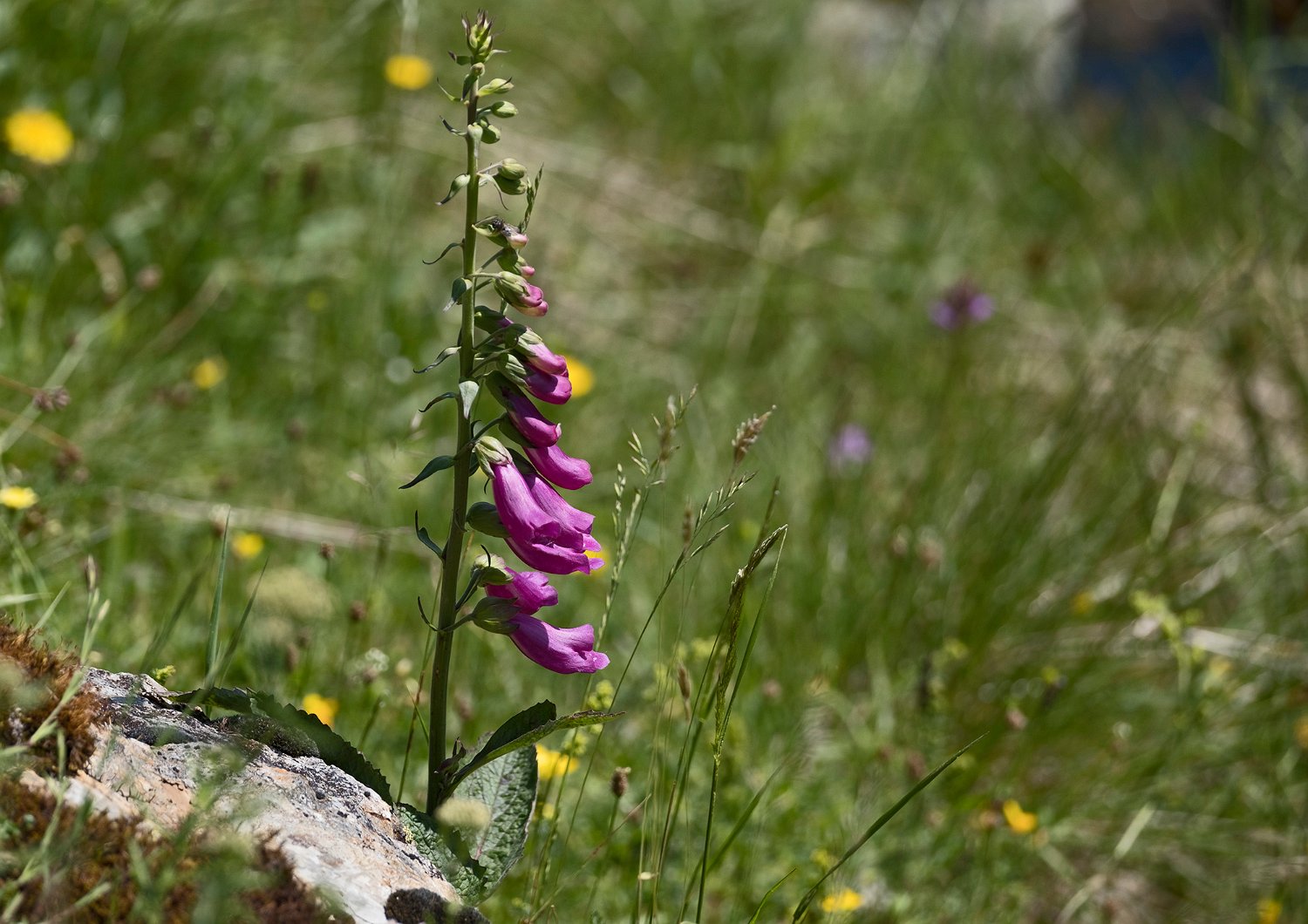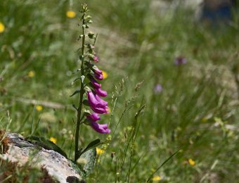 La jasse est plantée d'une prairie très fleurie, ici une digitale