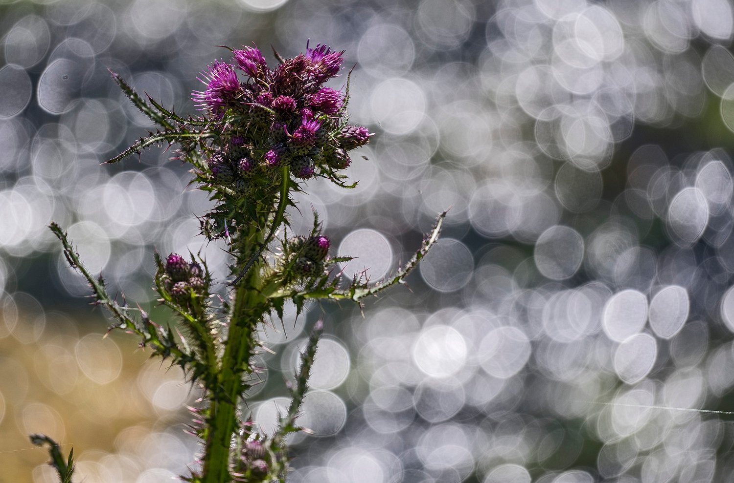 Un chardon qui joue avec les reflets de l'oriège