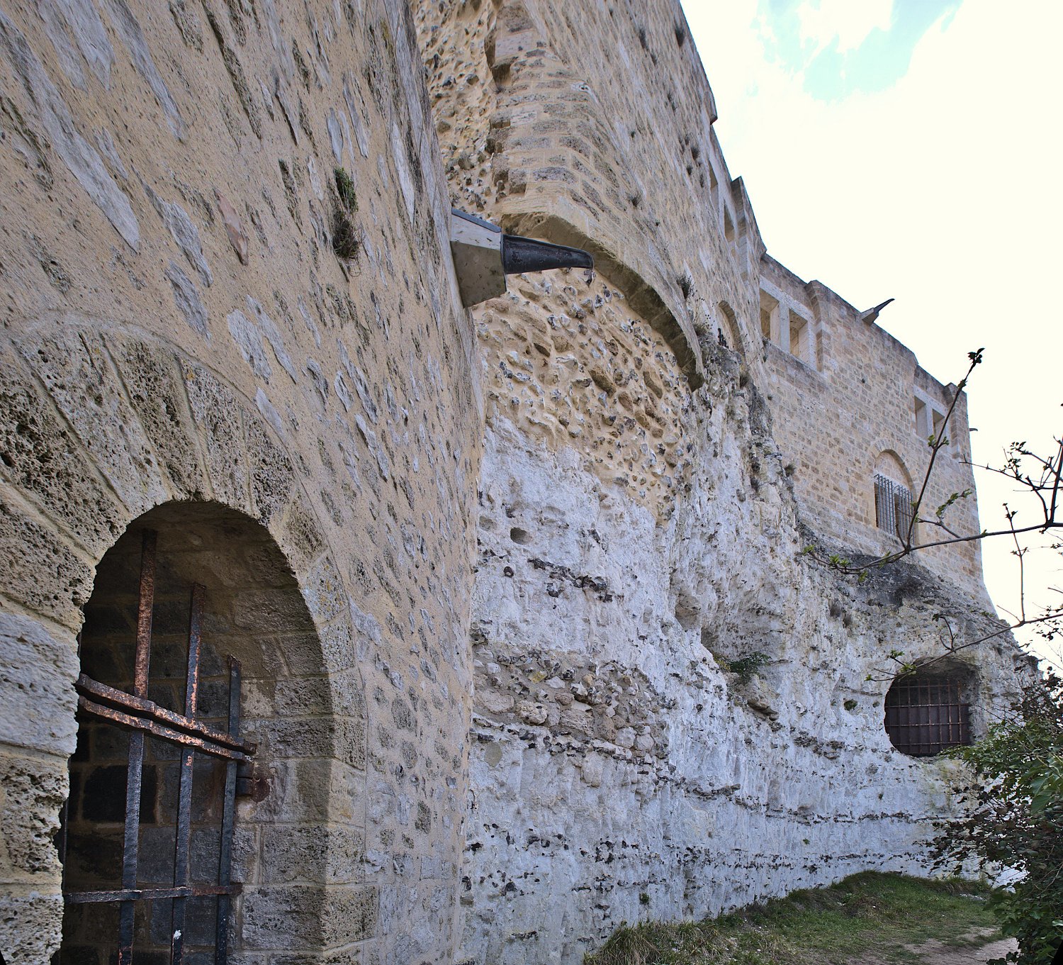 L'enceinte du donjon côté falaise et les murs des logis