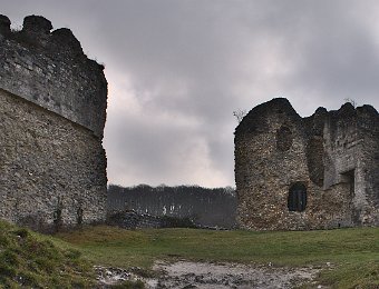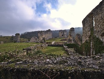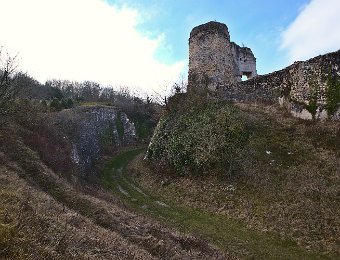 Ruines de bâtiments (ouvrage avancé) et de remparts dans la basse cour