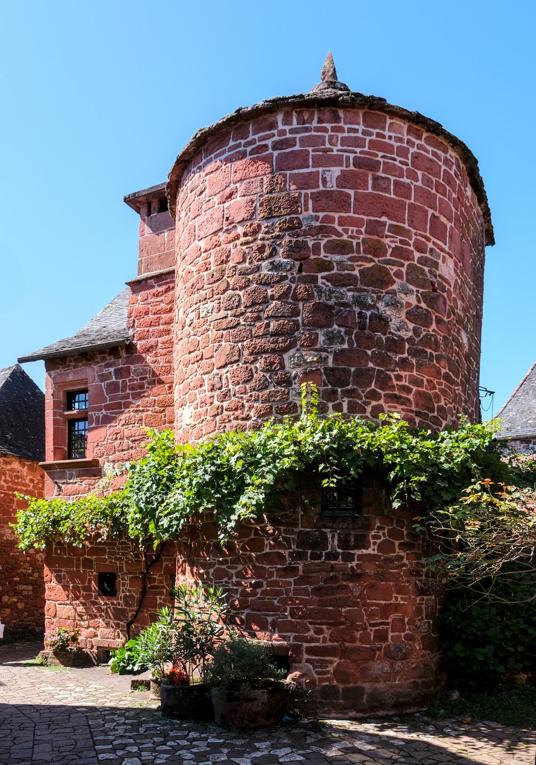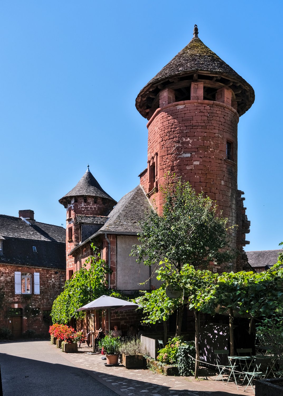 Collonges-la-Rouge est un village classé parmi les"plus beaux villages de France". Situé en Corrèze, il est célèbre pour son architecture médiévale exceptionnelle et son apparence unique, qui lui a valu le surnom de "La Cité aux Vingt-Cinq Tours" en raison des nombreuses tours qui ornent ses bâtiments. Son qualificatif provient de la couleur rouge du gré avec lequel le village est construit.