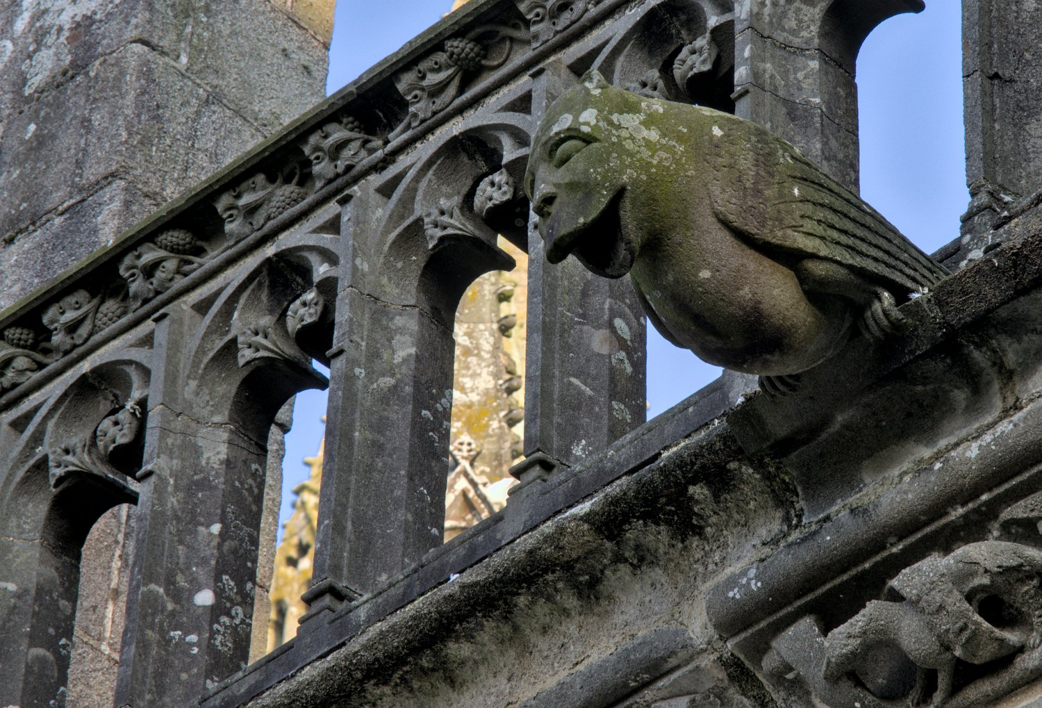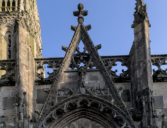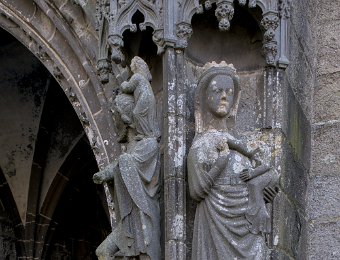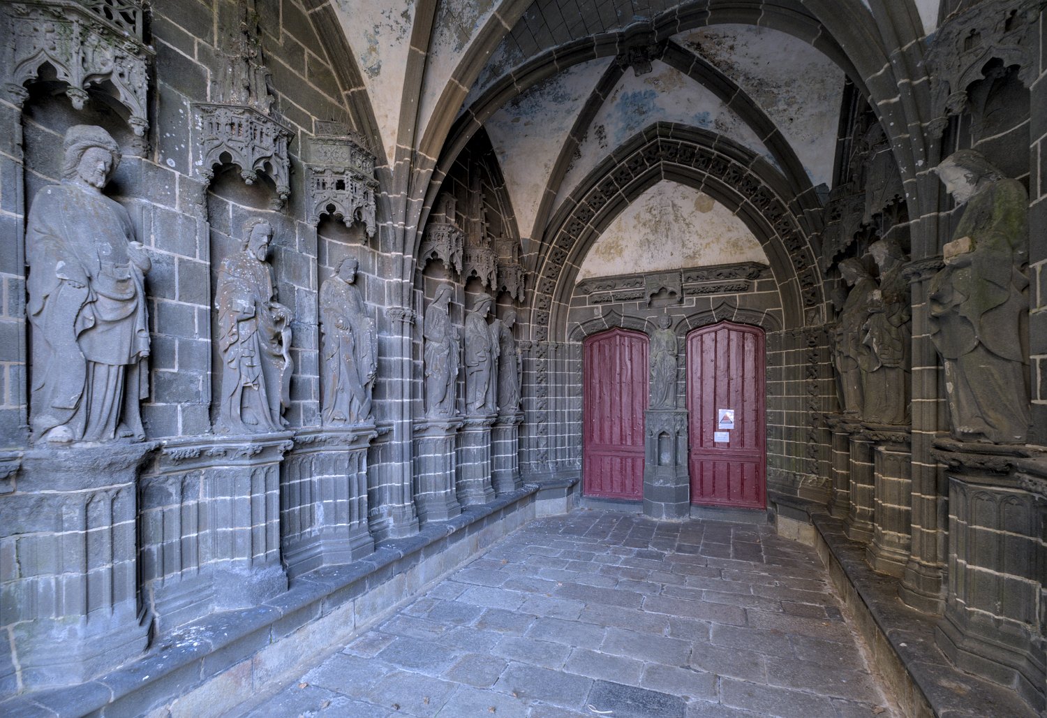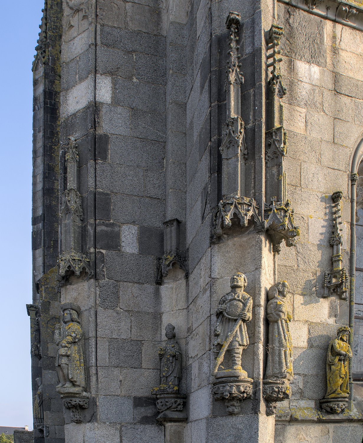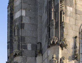 La basilique du Folgoet (Finistère) est une église gothique de style flamboyant tout à fait remarquable. Sa construction date des XIVème et XVè siècle. Son clocher culmine à 53 m de haut. Un incendie la dévasta en 1708, et à la révolution elle deviendra caserne dotée d'écuries. Elle sera rachetée en 1810 par un groupe de paroissiens qui la restaurent et lui redonnent son statut initial.