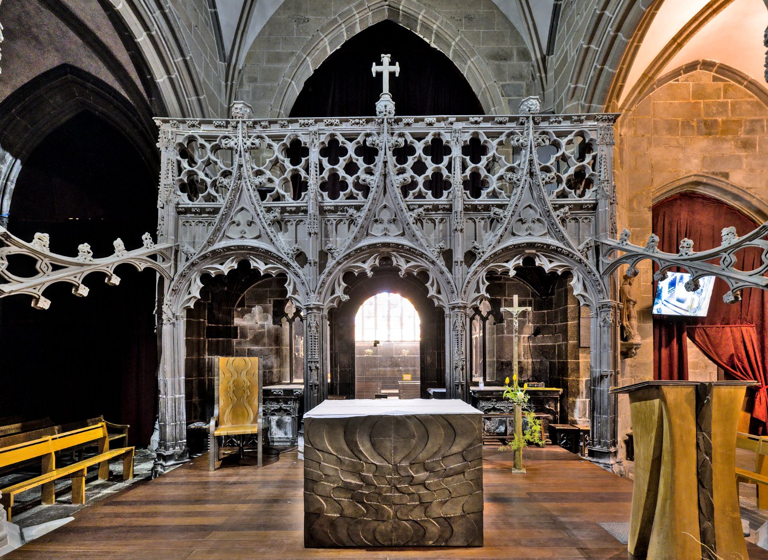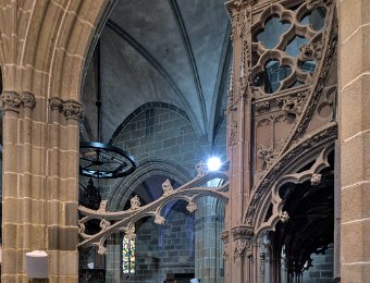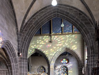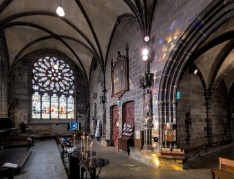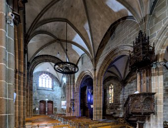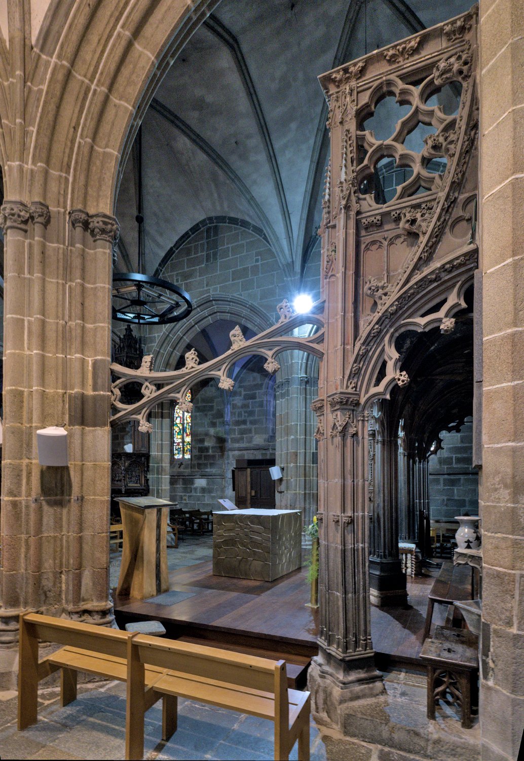 La basilique du Folgoet (Finistère) est une église gothique de style flamboyant tout à fait remarquable. Sa construction date des XIVème et XVè siècle. Son clocher culmine à 53 m de haut. Un incendie la dévasta en 1708, et à la révolution elle deviendra caserne dotée d'écuries. Elle sera rachetée en 1810 par un groupe de paroissiens qui la restaurent et lui redonnent son statut initial.