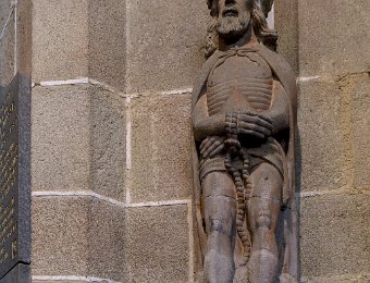 Porche ouest - Tympan de la nativité et de l'adoration des mages - Pilier de gauche : Saint Michel