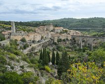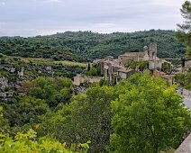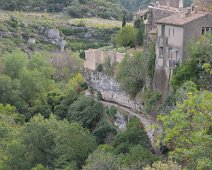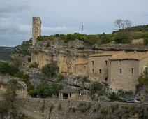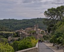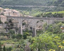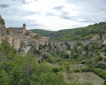 Vue sur le village, le pont, la Candela et la vallée de la Cesse
