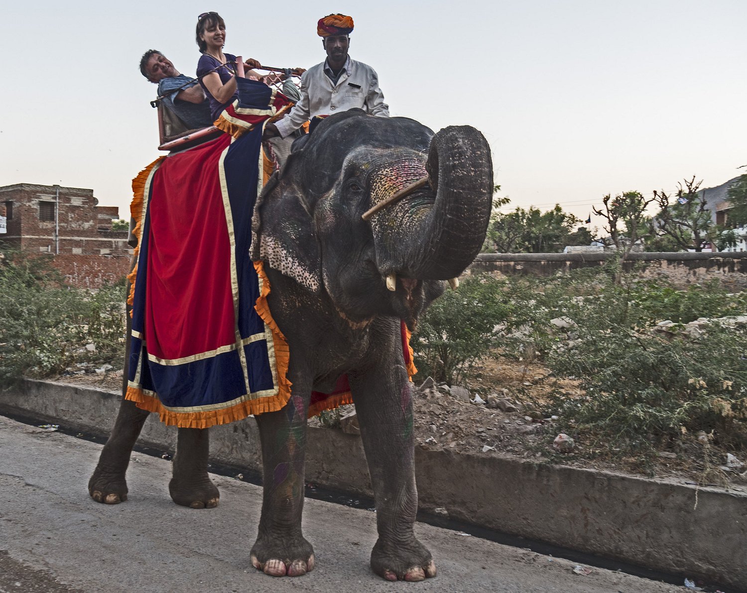 Elephant de transport de touristes un peu alcoolisés
