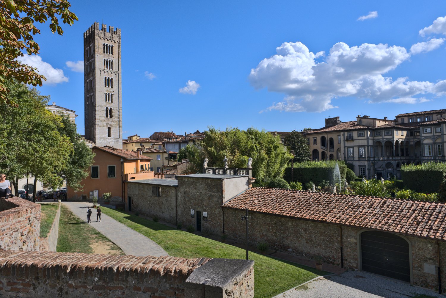 Lucca (Lucques en français) estune ville de Toscane qui a conservé sa structure médiévale : murailles et bastions, ruelles, palais. Ses remparts, construits au XVIe siècle sont aménagés pour faciliter la visite de la ville. La balade dans le centre historique permet de découvrir des monuments, dont la tour Guinigi et de nombreuses églises ( San Martin, San Michele in Foro, ...)