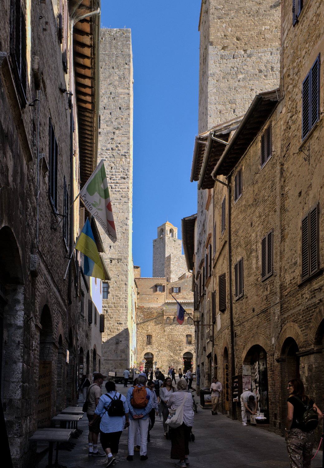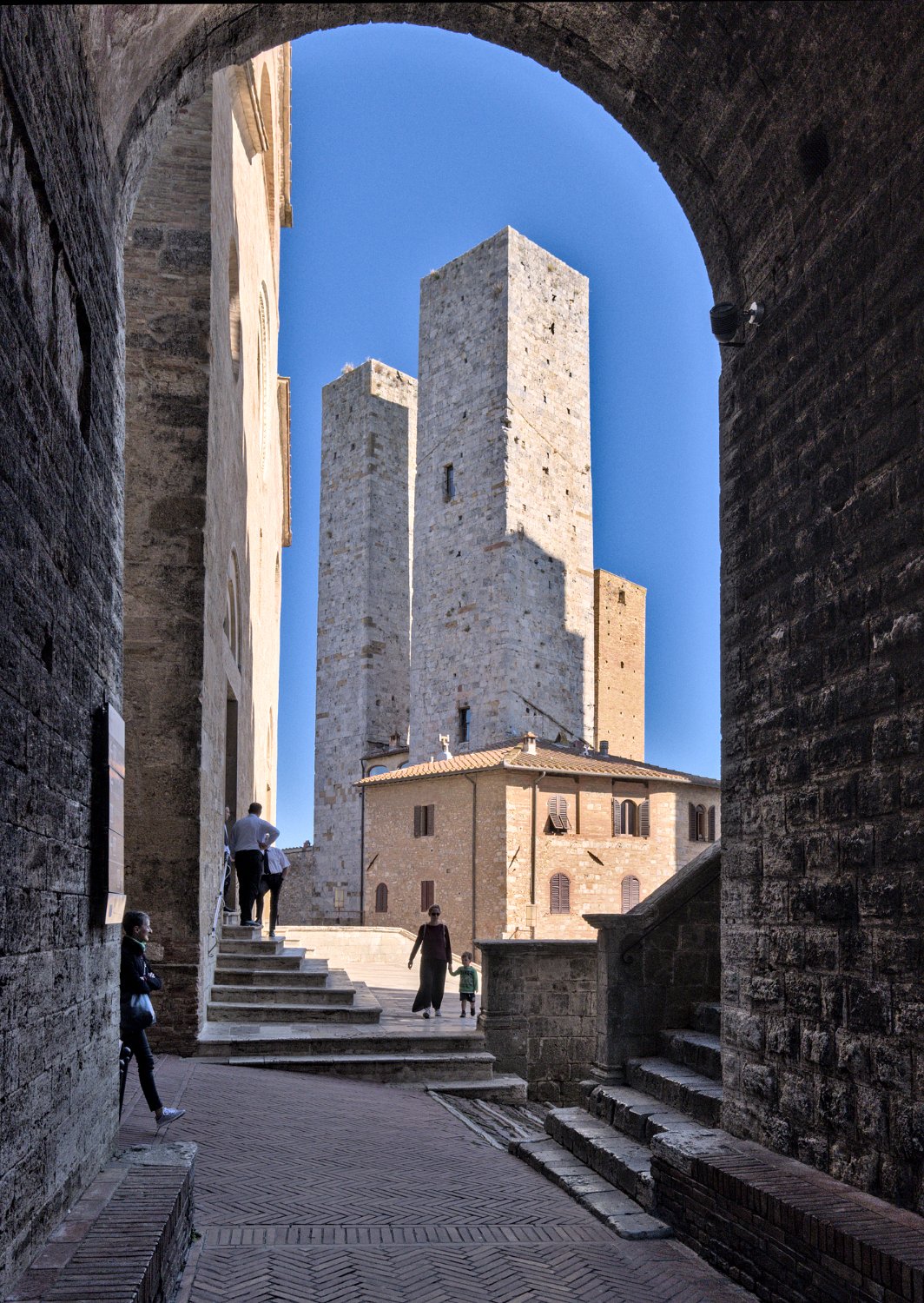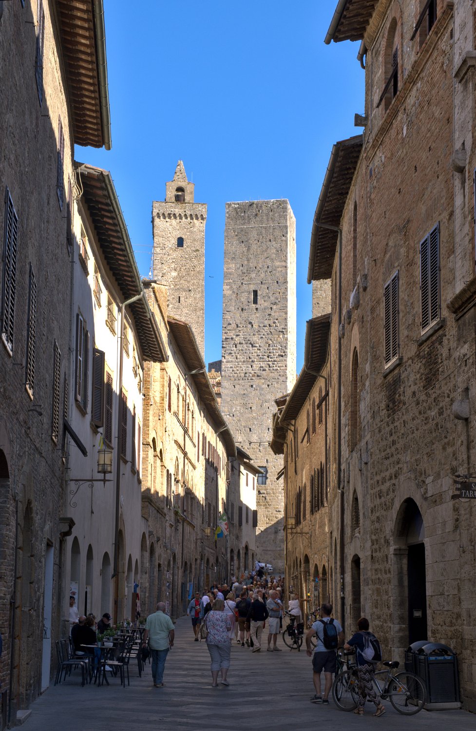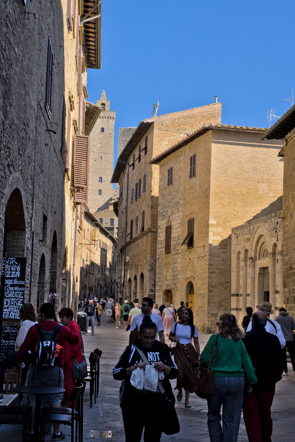 Visite du village de San Gimignano en Toscane (Italie). San gimignano est un petit village médiéval fortifié connu pour ses 14 tours encore conservées sur les 50 qu'il a compté.