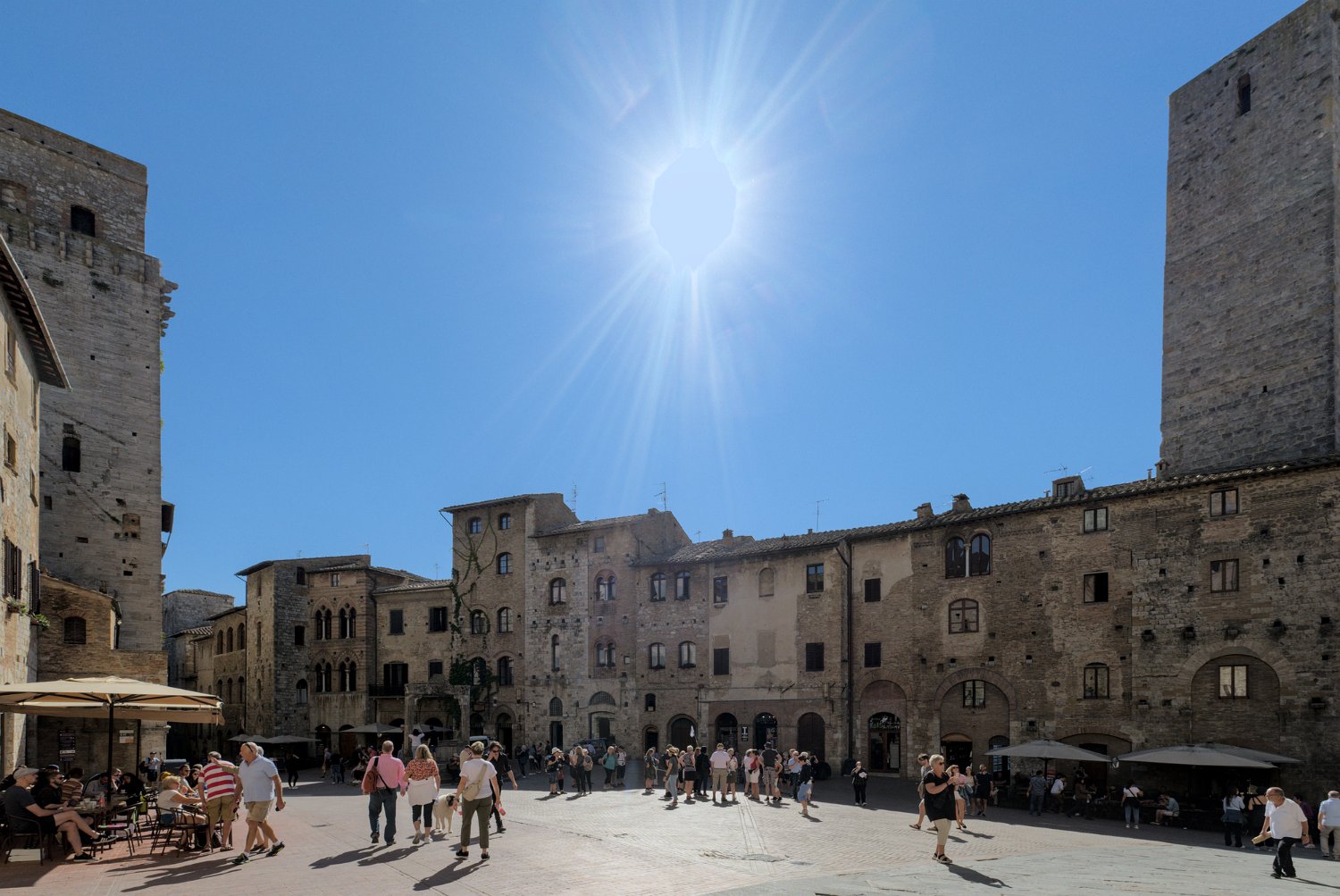Arrivée sur la piazza del Duomo- Au fond, les tours jumelle de Salvucci