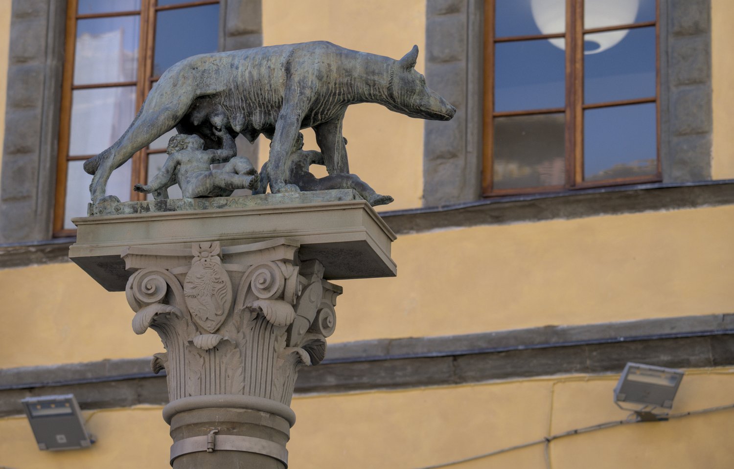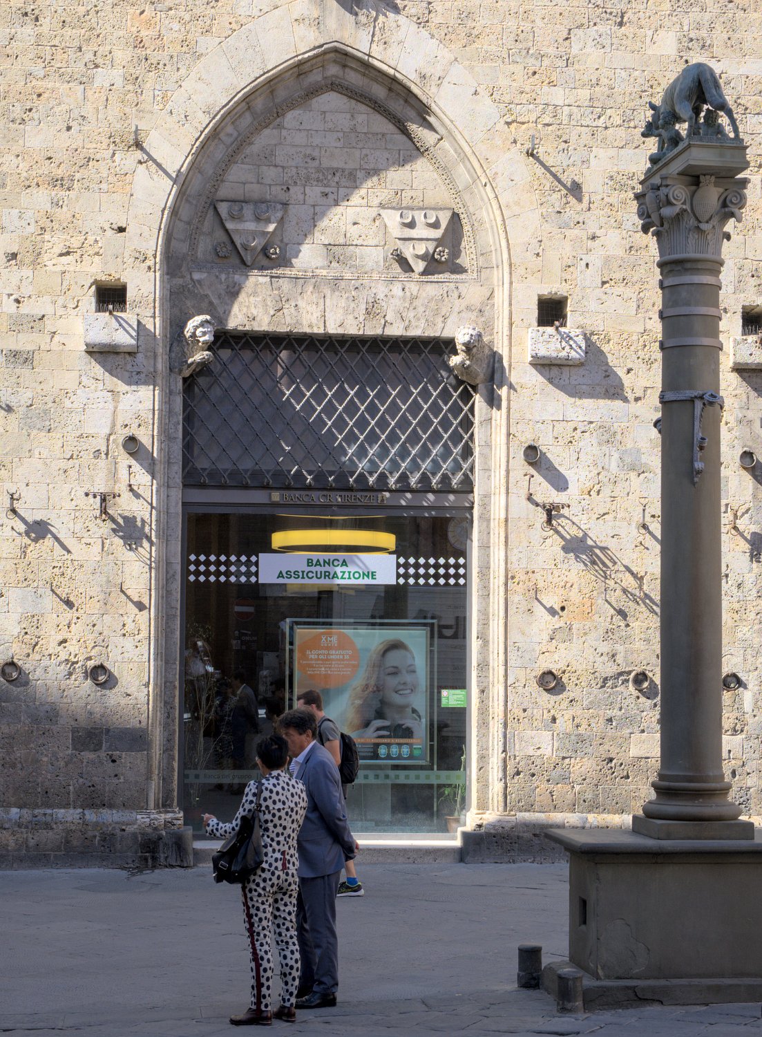 Porte d'une banque et colonne de la louve de Sienne