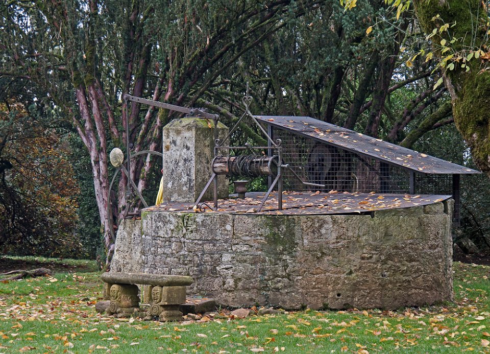 Jardin médiéval Jardin médiéval Puit Banc devant le puit