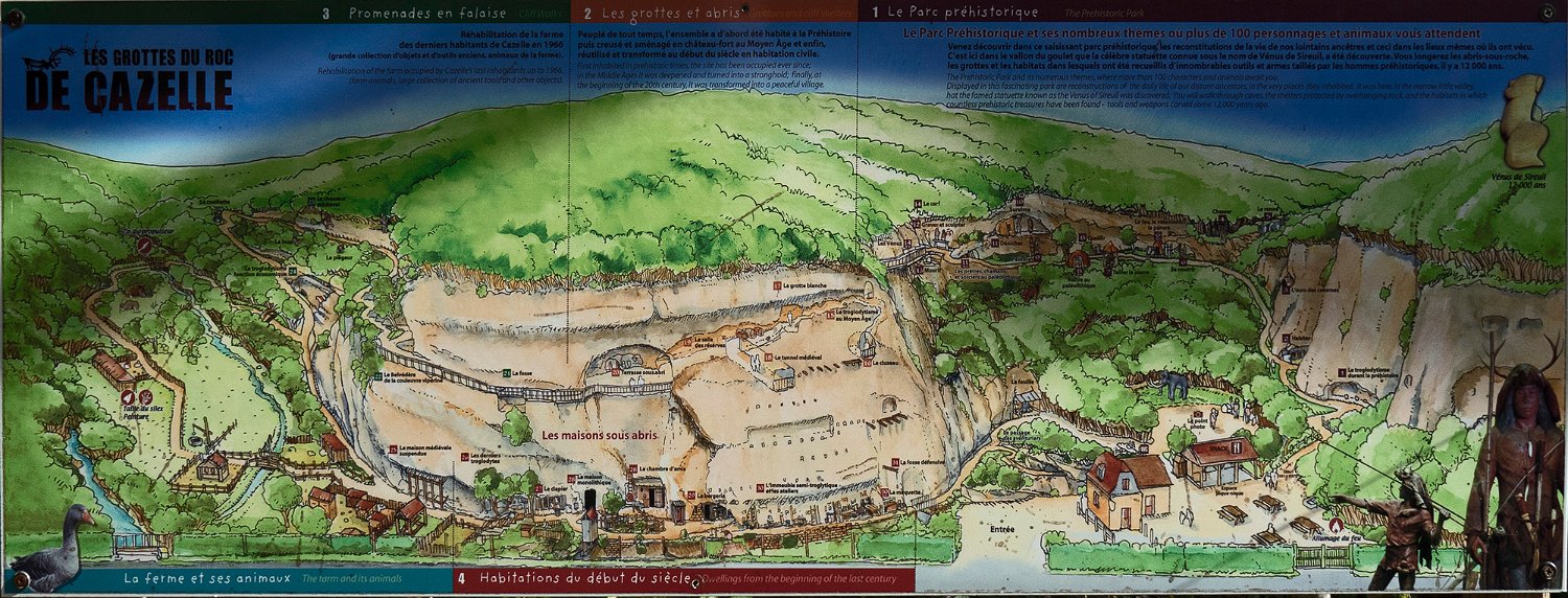 Le Roc de Cazelle est un parc préhistorique situé dans la vallée de la Beune près des Eyzies en Périgord. Le site a abrité l'homme depuis les temps préhistoriques jusqu'à encore très récemment, puisque le dernier habitant du site l'a quitté en 1966. La visite s'effectue à travers des grottes, sur des terrasses suspendues creusée par la Beune et à travers des bois qui occupent un vallon. La première partie du parcours est parsemée de reconstitutions de scènes préhistoriques et d'animaux de l'époque. Il se termine à travers les habitats troglodytiques plus récents.