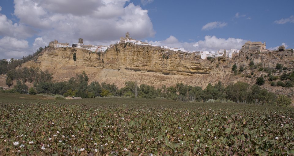 1Arcos avec un champs de coton Arcos de la Frontera se situe sur une colline surplombant une gorge de la rivière Guadalete.